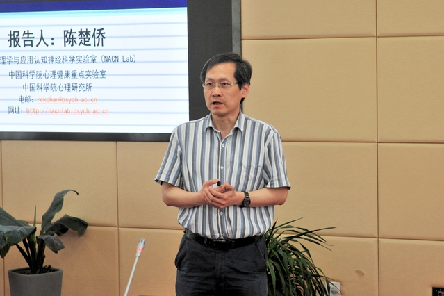 揭牌仪式后,陈楚侨研究员做了题为《跨临床与亚临床群体心理健康研究》的专题报告,他详细阐述了跨临床与亚临床群体心理研究的现状及未来研究方向,阐明了共建中心建设的意义、目标、展望及拟解决的关键问题等。心理学系全体教师及研究生、本科生代表认真听讲,陈楚侨、王毅还与师生们进行了学术讨论。