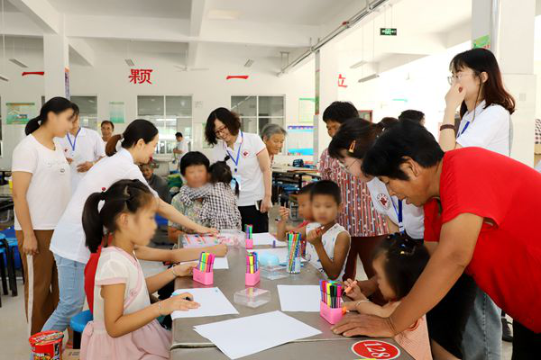 援助现场,心理援助团队跟参与寿光抗灾救灾与恢复重建协作平台负责人进行对接,了解了本次洪涝灾害的情况及特点,重点对在营里中小学校安置点里的老人、儿童、第二次受灾群众展开心理援助。大家为灾区儿童带去了彩色画笔、绘画纸、气球等物品,陪同孩子们画画、吹气球、做大风吹、小风吹等亲子游戏,现场不时传来孩子们童铃般的笑声,稚嫩的脸上露出天真的笑容。心理援助人员还分别跟老年人聊天,了解他们的想法,倾听他们的心声,根据每个人的心理特点开展针对性的心理抚慰,同时,还为灾民发放了灾后亲子心理自助手册和灾后公众心理自助手册,通过各种方式解除灾民的心理忧虑。