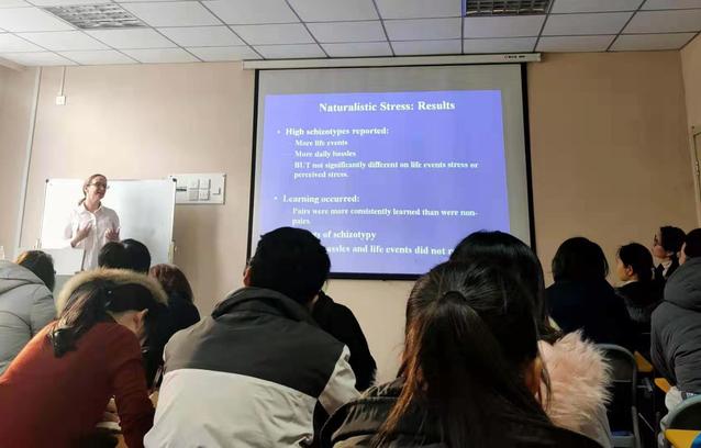 Emma Barkus作了题为《Factors which exacerbate schizotypal tendencies》的报告,她结合自己的工作经历及临床实验研究,详细介绍了严重精神障碍的危险因素,包括物质滥用、认知、情绪调节和分裂型人格特征之间的关系等内容,分享了自己在科研过程中对大麻使用、压力和欺凌对具有分裂型特征的健康个体的精神病症状表达的影响方面的一些研究结果,详细解答了师生们提出的问题。报告会后,副院长孙宏伟与陈楚侨、王毅一起听取了青年教师国科金申报项目汇报以及4名硕博士生的项目进展情况,并给予了细致指导。