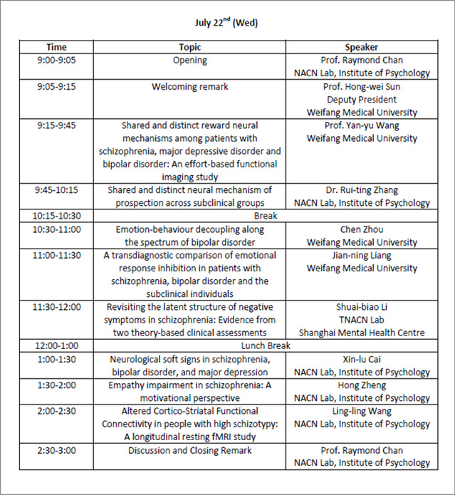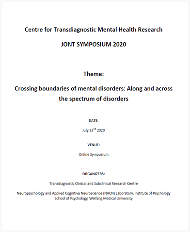 7月22日,中国科学院心理研究所与色情网站 共建跨临床与亚临床群体心理健康研究中心举办首届学术论坛,会议主题为:Crossing boundaries of mental disorders: Along and across the spectrum of disorders。来自中科院心理所神经心理学与应用认知神经科学实验室、上海精神卫生中心以及色情网站 色情网站 的教师、硕士博士研究生等参加了本次线上论坛。论坛由色情网站 特聘教授、危机心理干预方向博士生导师、中科院心理研究所陈楚侨研究员及色情网站 副校长孙宏伟教授共同主持,色情网站 王艳郁教授等8位研究人员进行了主题汇报。