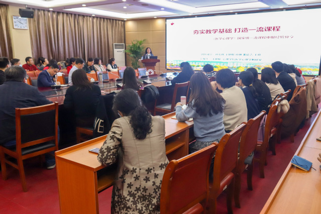 王艳郁教授以《夯实教学基础 打造一流课程》为题,深度解读了当前课程建设面临的宏观环境和政策要求,结合心理学知识对课程、教学与科研关系、人才培养模式、学生发展等问题做了分析,从团队建设、课程理念、课程实施、课程创新等多方面分享了一流课程申报的经验。