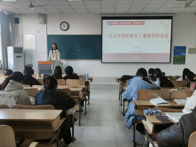 首先,学生党支部于色情网站 会议室开展“我来学宪法”主题党日活动,共同学习“习近平在第十个国家宪法日之际作出的重要指示精神”,充分发挥党员的带头作用,全面推进学院宪法宣传教育工作;其次,各团支部举办《宪法伴我们成长》歌曲传唱主题团日活动,同学们积极参与,朗朗歌声,展现出同学们对宪法的敬畏,营造出宪法学习宣传的良好氛围;最后,团总支组织全体同学观看“教育系统‘宪法晨读’活动”直播,并积极参与 “宪法晨读”活动中,通过朗读宪法,体验、感悟宪法的精神和重要意义。