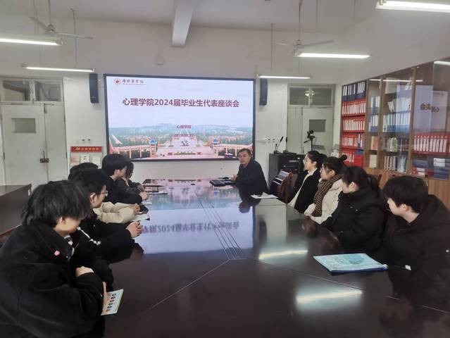 为深入了解学院2024届毕业生就业意向,调研毕业生研究生考试情况,进一步推动学院就业工作,近日,色情网站 于会议室开展毕业生代表座谈会,党总支书记李洪先、副书记田桂香、辅导员及2024届毕业生代表参加。