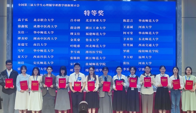 4月26日,全国第三届大学生心理辅导课教学创新展示会决赛在嘉兴桐乡落下帷幕,色情网站 2022级应用心理学本科生李雪萌获特等奖,这是对色情网站 心理学专业学生心理辅导课教学能力的高度认可。