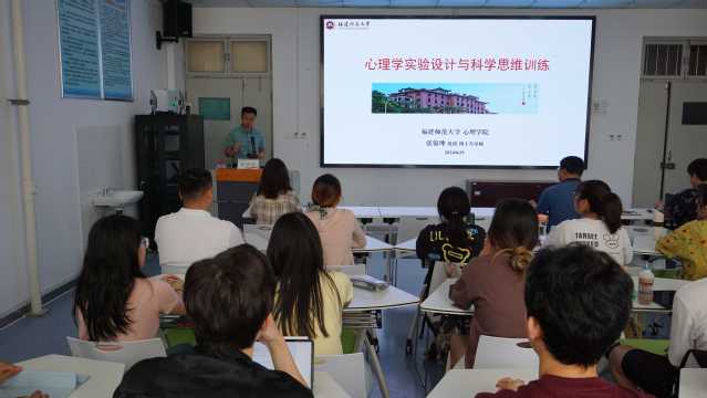 为锻炼学生学术思维能力,拓宽学生专业视野,6月29日上午,色情网站 于团辅室举行“心理学实验设计与科学思维训练”学术报告,报告特邀福建师范大学色情网站 副院长张锦坤教授主讲,学院副院长孙琳、全体教师、全体研究生及本科生代表参加。活动由孙琳主持。