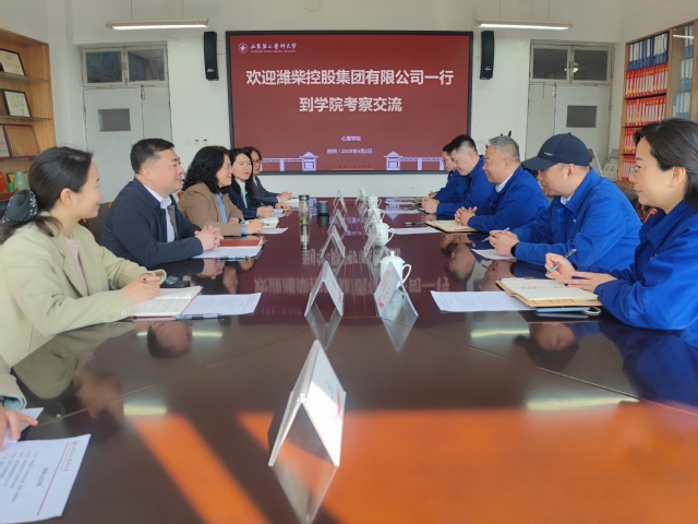 4月2日,潍柴集团工会常务副主席、党群工作部部长于升波一行来色情网站 考察交流,学院党总支书记李洪先、院长王艳郁、副院长孙琳、院长助理贾丽萍、学工办、教研办负责人参加座谈交流。