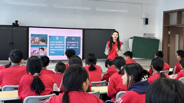 座谈中,双方就加强校校合作,以大学生专业力量护航青少年心理健康发展深入讨论。授课由山东省大学生心理学应用技能大赛教学创新赛道一等奖获得者张明扬主讲,她结合中学生考前常见的身心反应,以互动游戏开启破冰环节;随后,志愿者利用情景案例和互动游戏,从什么是压力、压力是敌是友以及解压小秘诀等多个角度进行深入浅出的讲解,引导学生以一个积极乐观的情绪状态面对考试,缓解考前焦虑与紧张情绪。