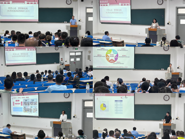 首先,王艳郁代表学院向与会家长表示热烈欢迎,并简要介绍了学校与学院的基本情况。她强调,大学阶段环境更加多元开放,学生既面临诸多机遇,也需应对各类挑战,希望家校携手,共同助力学生平稳过渡、全面发展。随后,孙琳就学院发展历程、学科建设、师资队伍和人才培养体系等方面作了系统介绍。接下来,辅导员介绍了学生管理、学团工作及新生数据。最后,李洪先表示,家庭与学校作为学生成长道路上不可或缺的基石,在育人征程中承载着举足轻重的使命。期望广大家长与学院携手并肩,持续关注孩子的身心健康,呵护其心灵成长与人格塑造,凝聚育人合力,为学生的全面发展与终身成长奠定坚实根基。