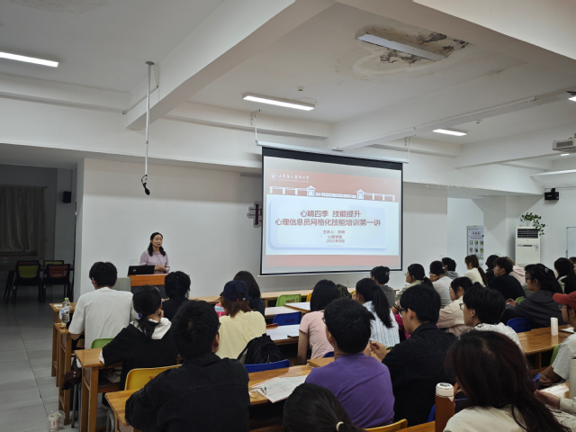 为进一步提升心理育人工作实效,完善学院心理健康防护体系,9月25日,心理学院在学促中心举办信息员网格化技能培训会。本次培训旨在赋能学生骨干,使其成为陪伴在同学们身边的“知心伙伴”和连接专业帮助的“暖心桥梁”。培训会由心理学院孙琳副院长主讲,辅导员及各年级班长、团支书、心理委员、宿舍心理信息员等参加培训。